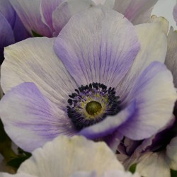 Italienische Kronen-Anemone. Große, azurblau mit weißen Blüten, manchmal mit einer zusätzlichen Schicht von Blütenblättern. Am bekanntesten als Schnittblume, aber auch schön für den Garten. Im Winter leicht abdecken.