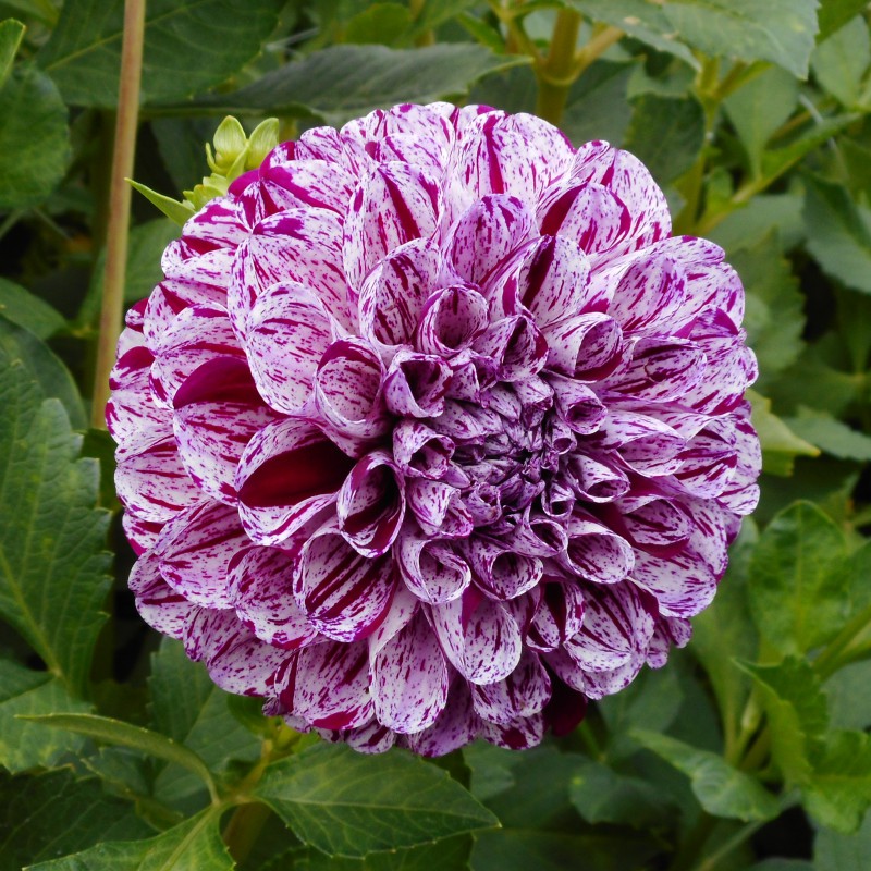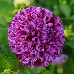 Balldahlien. Weiß mit lila, perfekte Schnittblume. Blütengröße 9 cm.