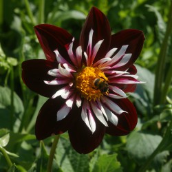 Dunkel schwarzrot, weiße Krause, Höhe 90 cm, Blüten 7-8 cm.