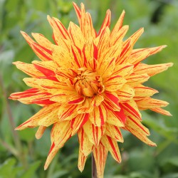 Gelb, mit roten Sprenkeln und Streifen, Höhe 110-120 cm. Blütengröße 15-20 cm.