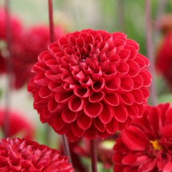 Pompondahlia mit dunkelroten Blüten. Blütengröße 7 cm. AUS BIOLOGISCHEM ANBAU.