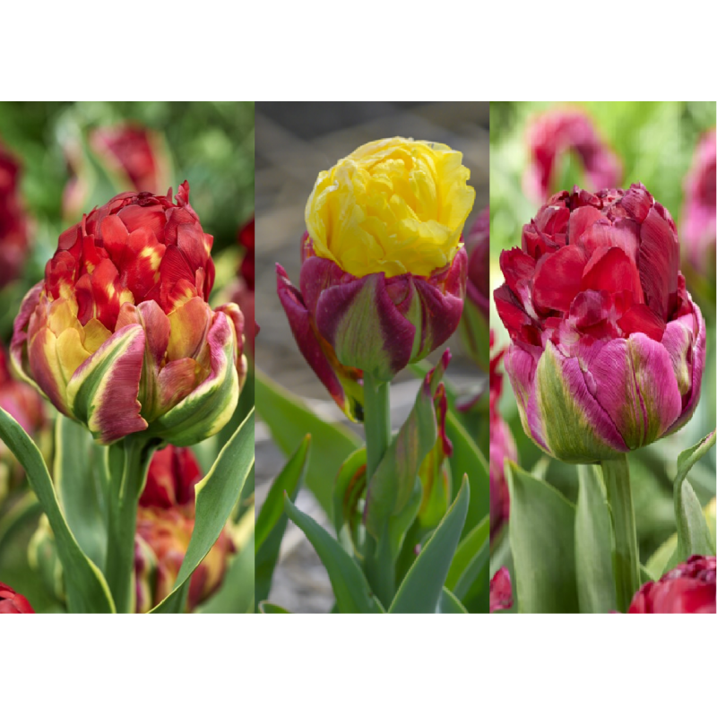 Sehr gefüllte Tulpen mit einer markanten Blütenform, die an eine Eistüte erinnert.