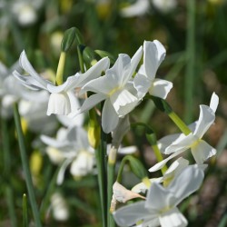 Sehr schöne niedrige Narzisse mit elfenbeinfarbigen Blüten, mehrblumig und recht spät. Lange Blütezeit. Höhe ca. 30 cm.