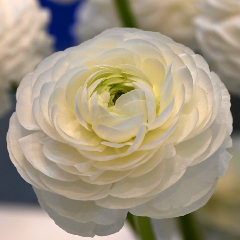Der italienische Ranunkel aus der ELEGANCE-Serie zeichnet sich durch eine höhere Produktivität, längere Stiele und größere, gefüllte Blüten aus. Die Blütenfarbe von Bianco ist zunächst cremeweiß mit grüner Mitte, später ganz weiß. Weichen Sie die Knollen vor dem Einpflanzen ein. Während der Blütezeit regelmäßig gießen und zusätzliche Nährstoffe geben. Das Entfernen der verblühten Blüten fördert eine kontinuierliche Blüte.
