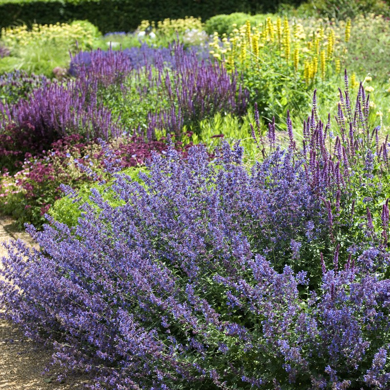 Katzenminze, aromatische Stauden mit einer buschigen Wuchsform. Für einen Platz in voller Sonne bis Halbschatten, auf durchlässigem Boden. Eine stark wachsende Pflanze. Ist etwas höher als der 'Six Hill's Giant'.
