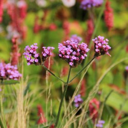 Kleines Patagonisches Eisenkraut. Lang blühende Rabattenpflanze mit luftiger Wuchsform, die oft als Webenpflanze verwendet wird. Die Blüten ziehen viele Schmetterlinge und Insekten an. Wenn der Winter nicht zu kalt ist, kann die Pflanze mehrere Jahre überdauern.